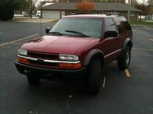 Plasti Dip sprayed the lower front bumper, rear driver side fender, all 4 center wheel caps, Chevy bowtie, driver side Chevy bowtie and Blazer emblem.