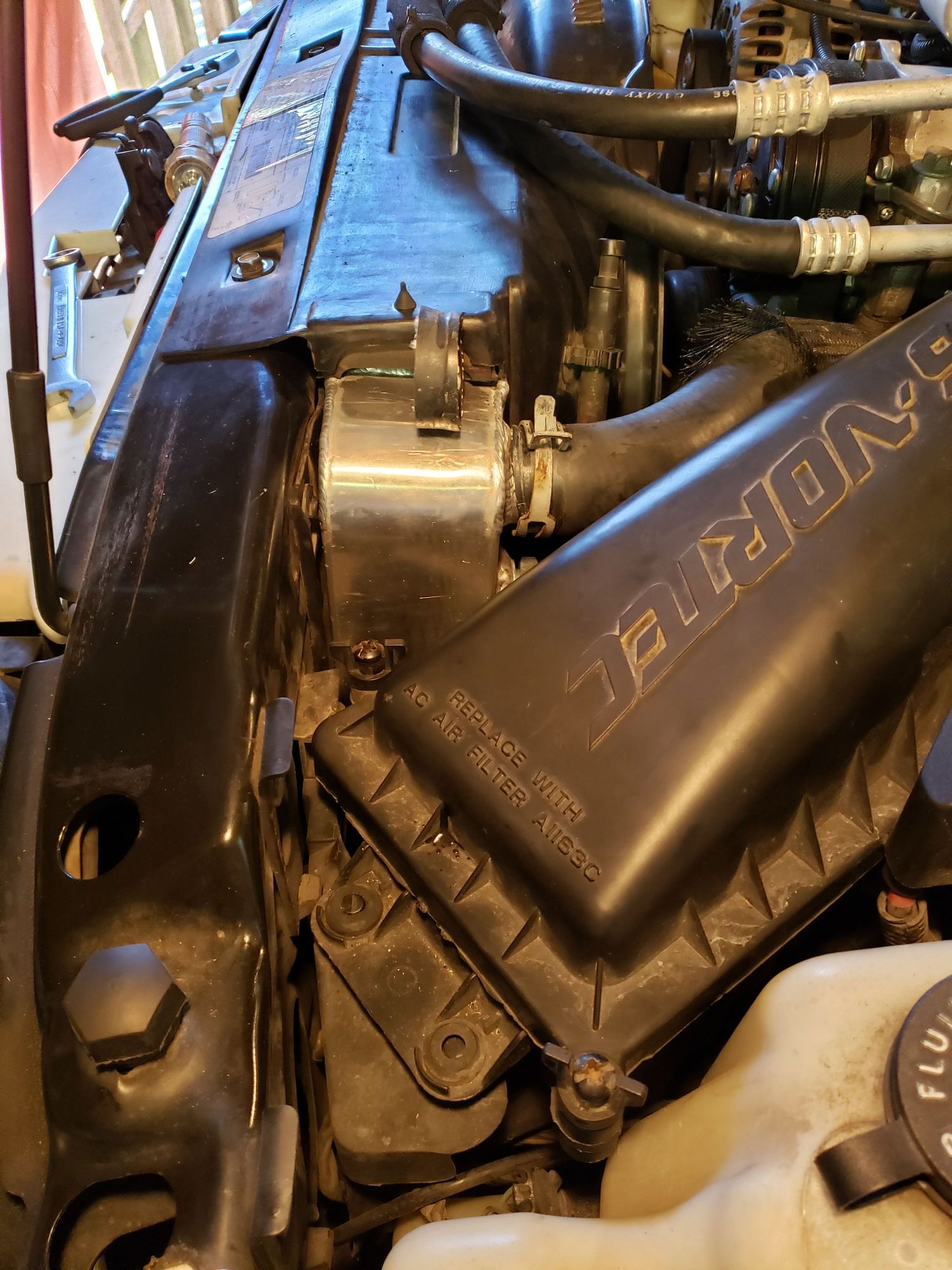 Because of extra thickness of radiator, about an inch of the upper radiator hose had to replaced.