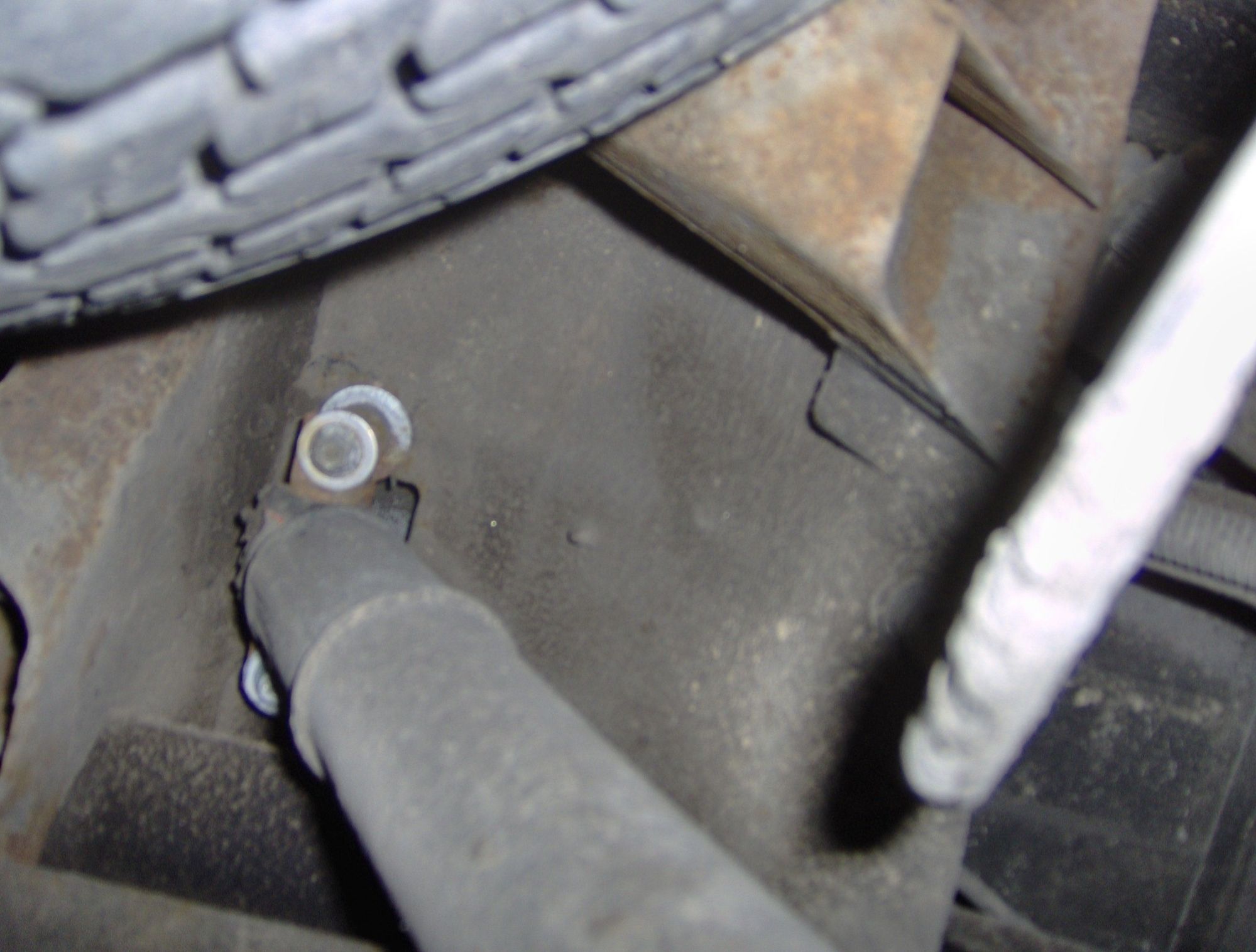 Looking up at rear shock mount mount extension to allow use of OE self-leveling shocks and special ZW7 rear leaf springs