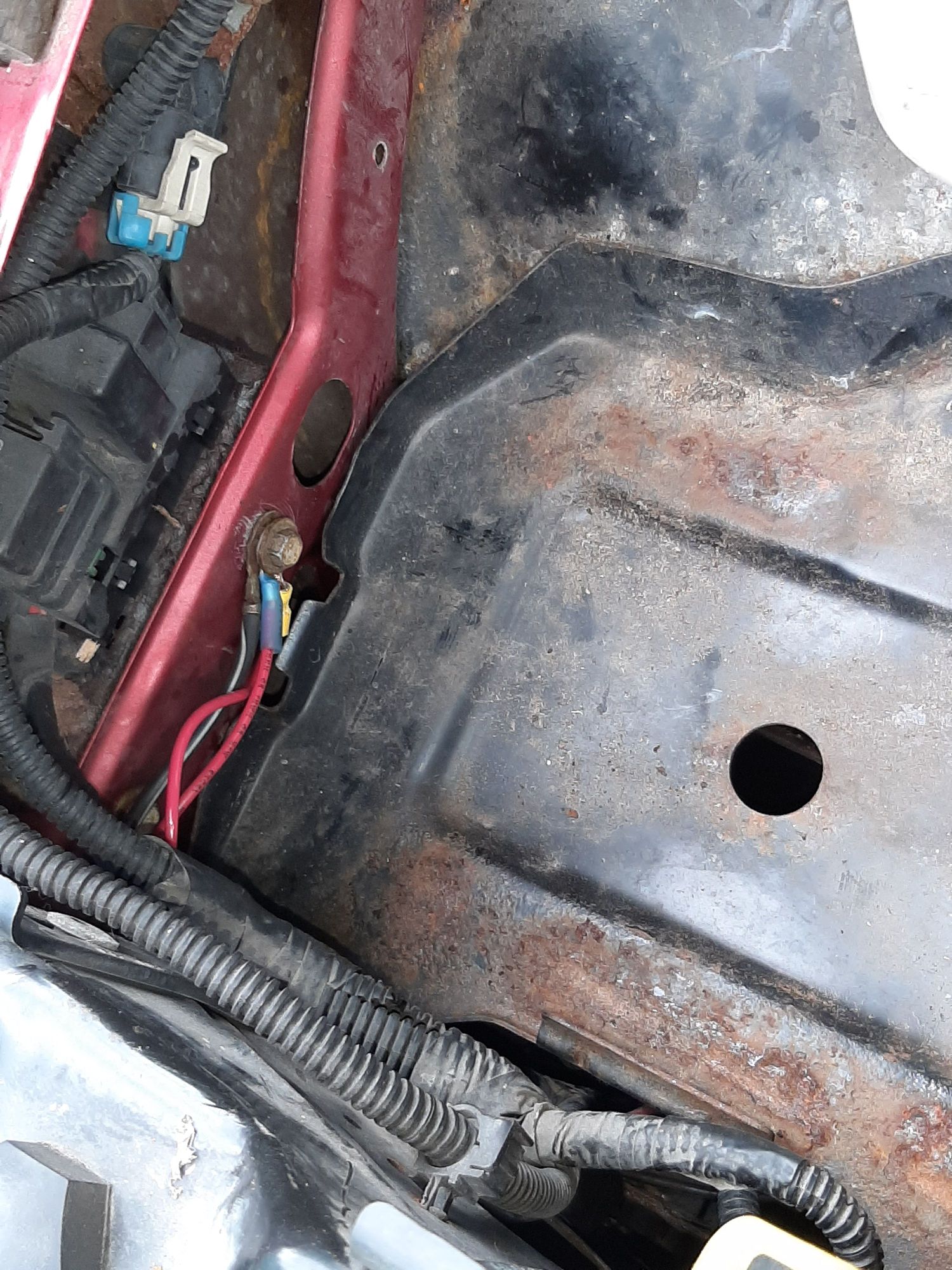 Relocated to the inner fender beside the battery box.