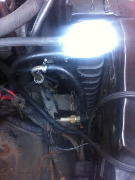 connected the new rad to the hot line so the tranny won't get too cold in the winter, if we got a winter. Mostly too lazy to get at the cool return line they said to use