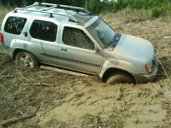 my friends xterra fail turn around attempt gets him stuck so he calls me and the traiblazer to come pull his ass out lol :) Chevy>Nissan
