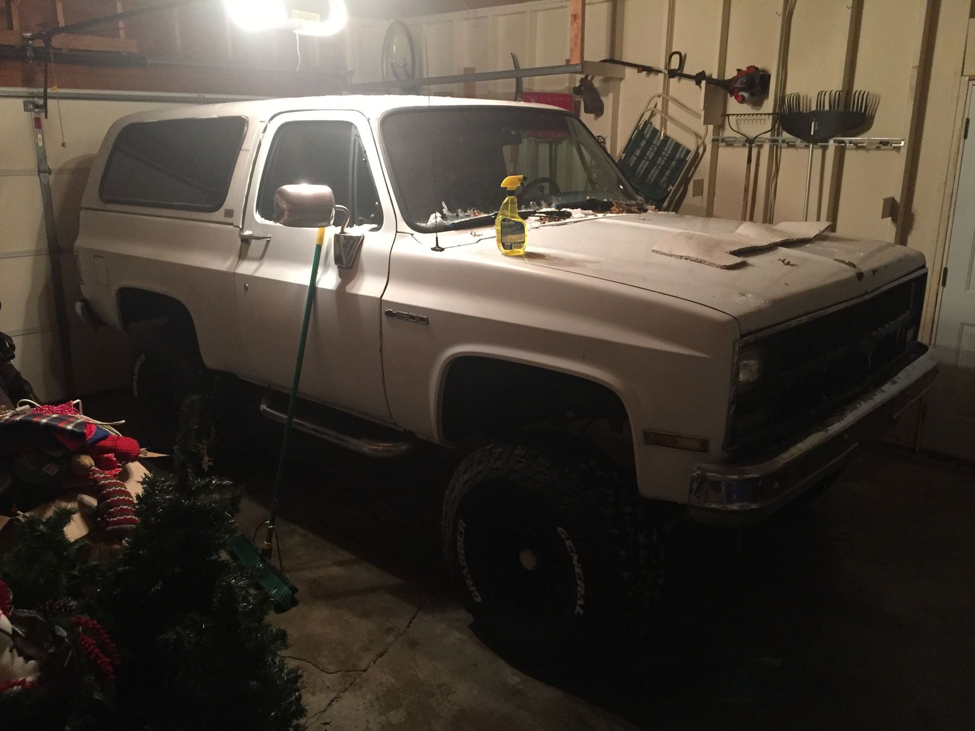 Had to put a few hundred pounds of weights and landscaping blocks and air out the tires to make it low enough to fit in my garage.