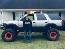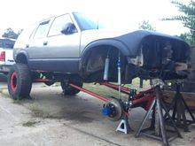 FYI thats a Ford F-250 Powerstroke with some decent tires on it behind the blazer. Plus the blazer is downhill on the driveway from the truck